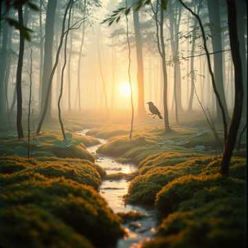 Ambientorganicsoundscapebuiltfromlayeredforestfieldrecordings,softdrones,andsubtlemalletpatterns.Slowbuild:close-updetails(leaves,branches,insects)atthestart,thenwiderstereoimagewithairypadsanddistantlowpercussionswells.Everythingstaysgentleandhypnotic,likeaquietwalkthatturnsmeditative,withevolvingtexturesinsteadofbigdrops.